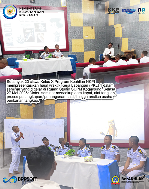 Pada awal pekan ini, siswa Kelas X Program Keahlian Nautika Kapal Penangkap Ikan (NKPI) mengikuti Seminar Laporan PKL 1 yang dilaksanakan di Ruang Studio SUPM Kotaagung.