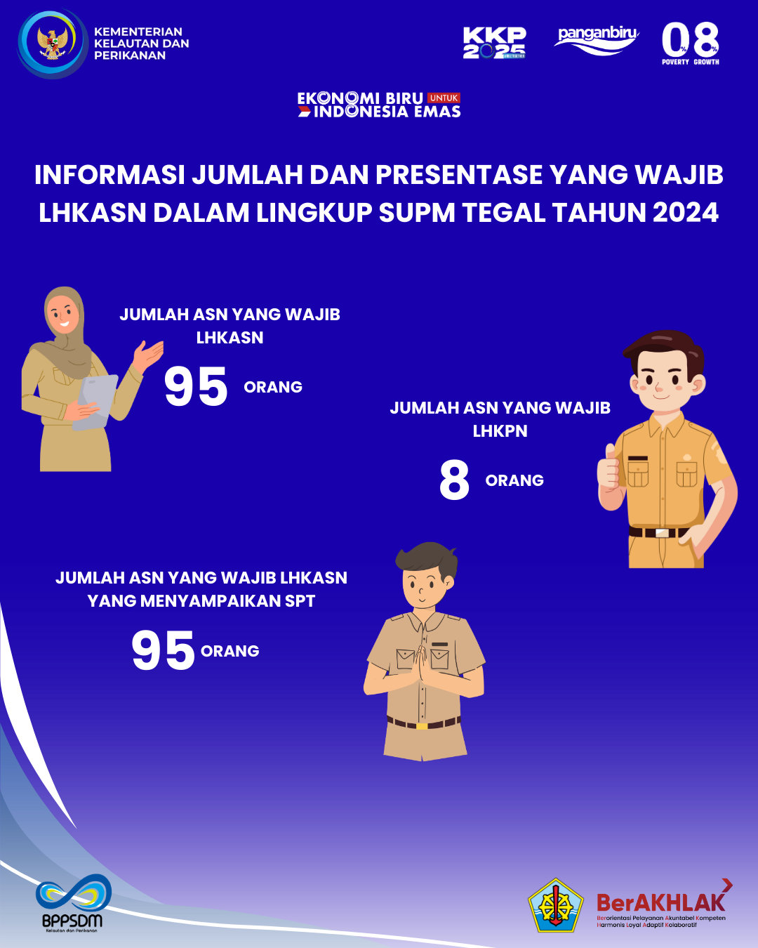 Sebagai bentuk transparansi dan akuntabilitas dalam menjalankan tugas dan tanggung jawab sebagai pejabat negara maka tahun 2024, seluruh pegawai ASN di Sekolah Usaha Perikanan Menengah Tegal yang berjumlah 95 orang berhasil menyampaikan Laporan Harta Kekayaan Aparatur Sipil Negara (LHKASN). Pencapaian ini menunjukkan bahwa 100% pegawai SUPM Tegal mematuhi kewajiban pelaporan kekayaan sesuai dengan regulasi yang berlaku. Selain itu,6 di antara pegawai tersebut juga telah menyampaikan Laporan Harta Kekayaan Pejabat Negara (LHKPN), Hal ini mencerminkan komitmen SUPM Tegal terhadap integritas dan kepatuhan terhadap peraturan dalam tata kelola pemerintahan yang baik.